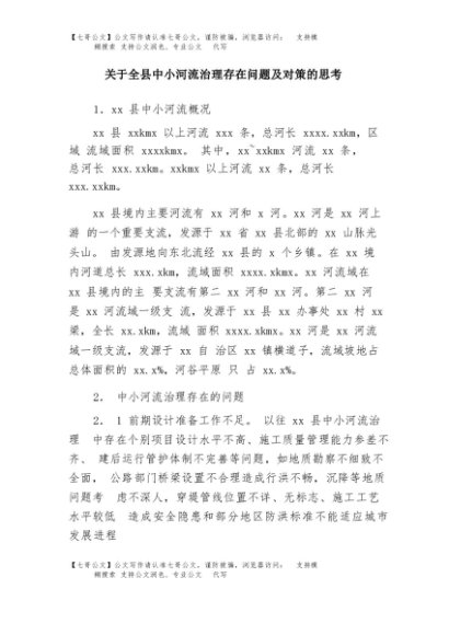 【七哥公文】2025年:关于全县中小河流治理存在问题及对策的思考+更多免费公文+VX:QiGeGongWen2024