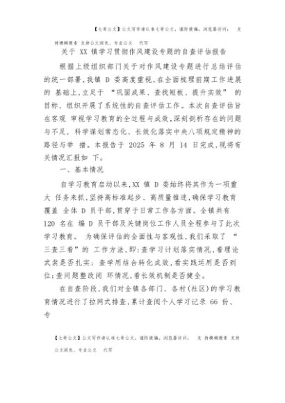 / 【七哥公文】2025年:关于XX镇学习贯彻作风建设专题的自查评估报告+更多免费公文+VX:QiGeGongWen2024