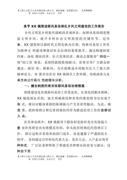 【七哥公文】2025年:关于XX镇推进移风易俗深化乡风文明建设的工作报告+更多免费公文+VX:QiGeGongWen2024