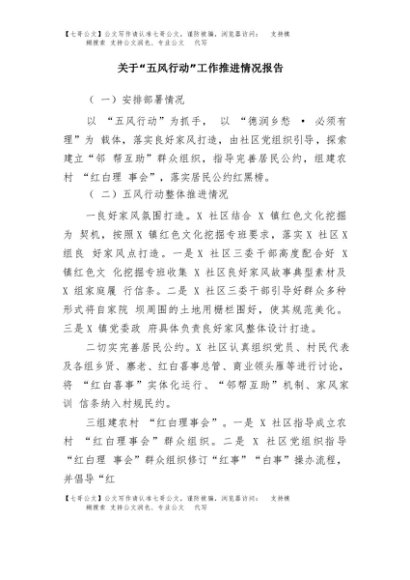 / 【七哥公文】2025年:关于“五风行动”工作推进情况报告+更多免费公文+VX:QiGeGongWen2024