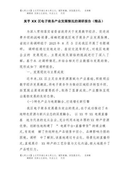 【七哥公文】2025年:关于XX区电子商务产业发展情况的调研报告(精品)+更多免费公文+VX:QiGeGongWen2024