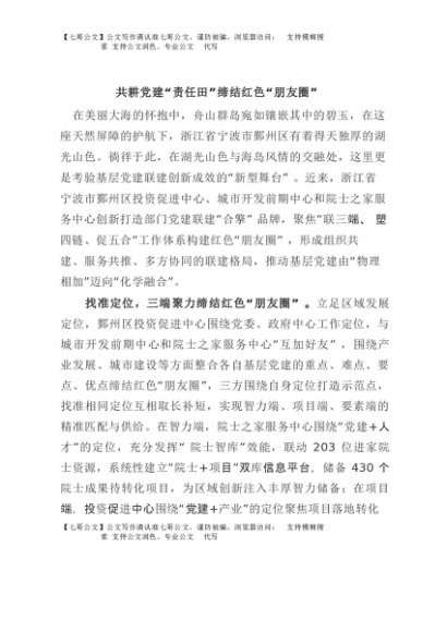 / 【七哥公文】2025年:共耕党建“责任田”缔结红色“朋友圈”+更多免费公文+VX:QiGeGongWen2024