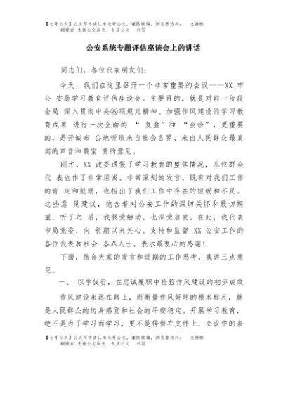 【七哥公文】2025年:公安系统专题评估座谈会上的讲话+更多免费公文+VX:QiGeGongWen2024