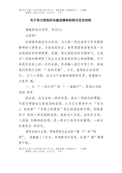 / 【七哥公文】2025年:关于学习贯彻作风建设精神的研讨发言材料+更多免费公文+VX:QiGeGongWen2024