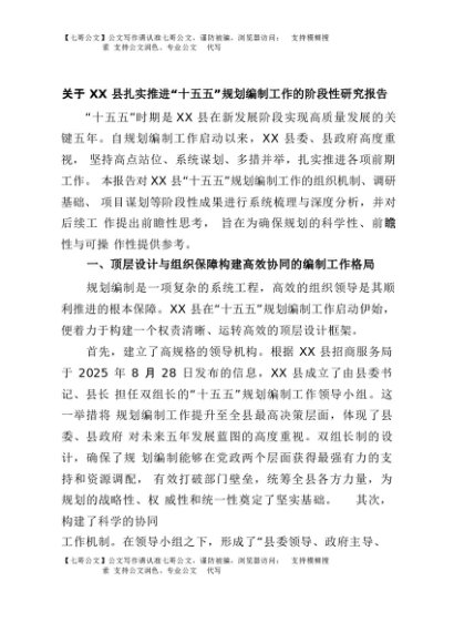 【七哥公文】2025年:关于XX县扎实推进“十五五”规划编制工作的阶段性研究报告+更多免费公文+VX:QiGeGongWen2024