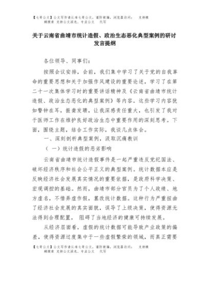 【七哥公文】2025年:关于云南省曲靖市统计造假、政治生态恶化典型案例的研讨发言提纲+更多免费公文+VX:QiGeGongWen2024