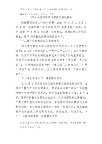 / 【七哥公文】2025年:共青团团委巡察整改情况报告+更多免费公文+VX:QiGeGongWen2024