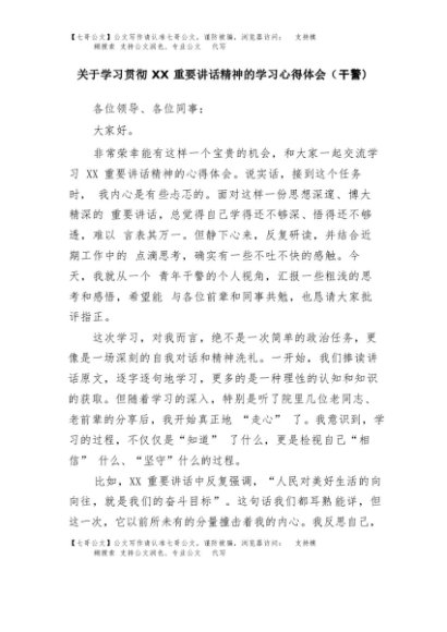 【七哥公文】2025年:关于学习贯彻XX重要讲话精神的学习心得体会(干警)+更多免费公文+VX:QiGeGongWen2024