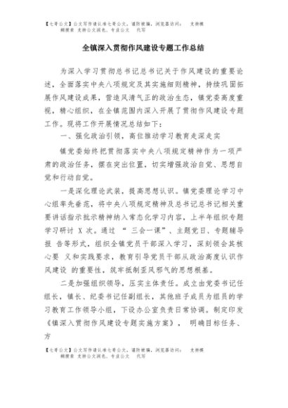 / 【七哥公文】2025年:全镇深入贯彻作风建设专题工作总结+更多免费公文+VX:QiGeGongWen2024