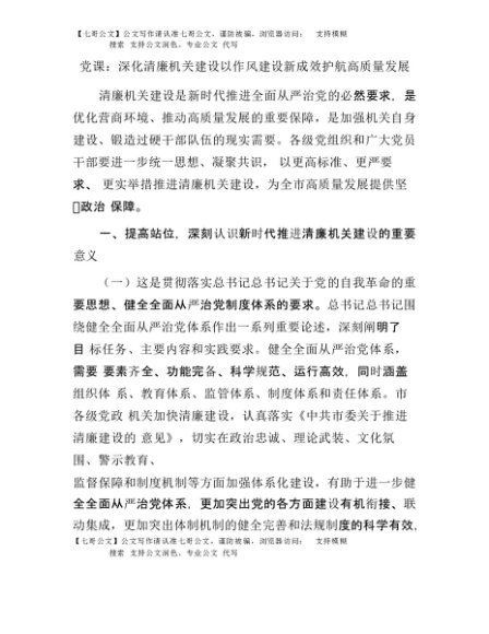 【七哥公文】2025年:党课:深化清廉机关建设 以作风建设新成效护航高质量发展+更多免费公文+VX:QiGeGongWen2024
