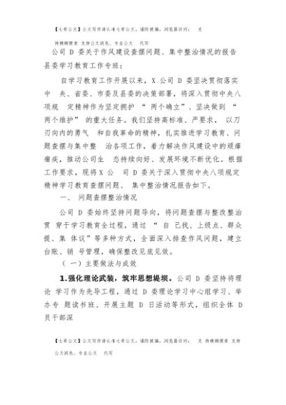 【七哥公文】2025年:公司党委关于作风建设查摆问题、集中整治情况的报告+更多免费公文+VX:QiGeGongWen2024