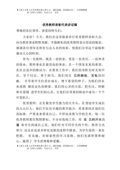/ 【七哥公文】2025年:优秀教师表彰代表讲话稿+更多免费公文+VX:QiGeGongWen2024