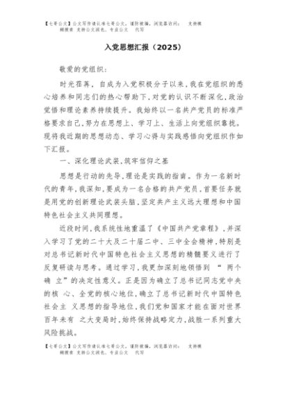 / 【七哥公文】2025年:入党思想汇报(2025)+更多免费公文+VX:QiGeGongWen2024
