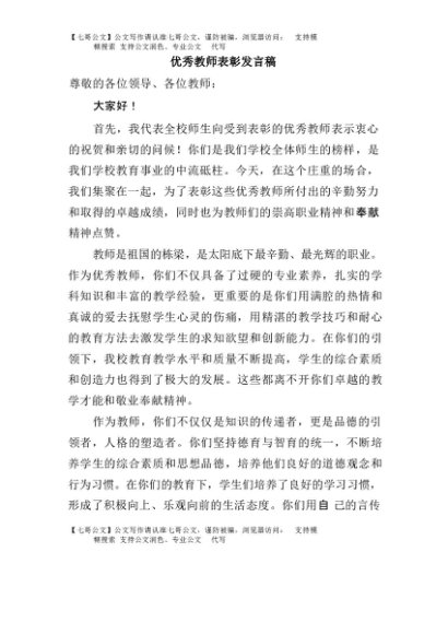 【七哥公文】2025年:优秀教师表彰发言稿+更多免费公文+VX:QiGeGongWen2024