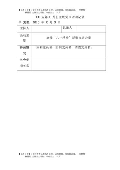 / 【七哥公文】2025年:主题党日模板08+更多免费公文+VX:QiGeGongWen2024