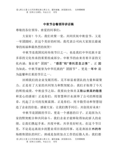 / 【七哥公文】2025年:中秋节会餐领导讲话稿+更多免费公文+VX:QiGeGongWen2024