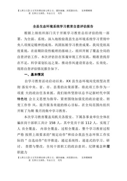 / 【七哥公文】2025年:全县生态环境系统学习教育自查评估报告+更多免费公文+VX:QiGeGongWen2024
