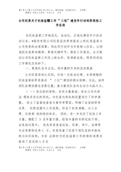 【七哥公文】2025年:公司纪委关于纪检监察工作“三化”建设年行动的阶段性工作总结+更多免费公文+VX:QiGeGongWen2024