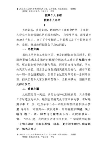 【七哥公文】2025年:假期个人总结+更多免费公文+VX:QiGeGongWen2024