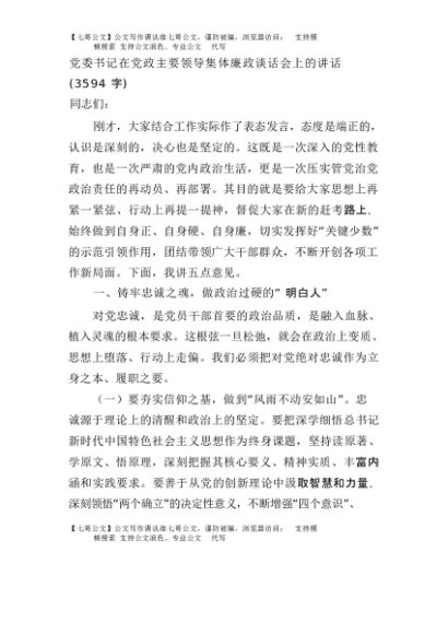 【七哥公文】2025年:党委书记在党政主要领导集体廉政谈话会上的讲话(3594字)+更多免费公文+VX:QiGeGongWen2024
