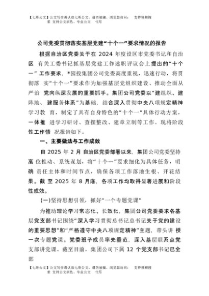 【七哥公文】2025年:公司党委贯彻落实基层党建“十个一”要求情况的报告+更多免费公文+VX:QiGeGongWen2024