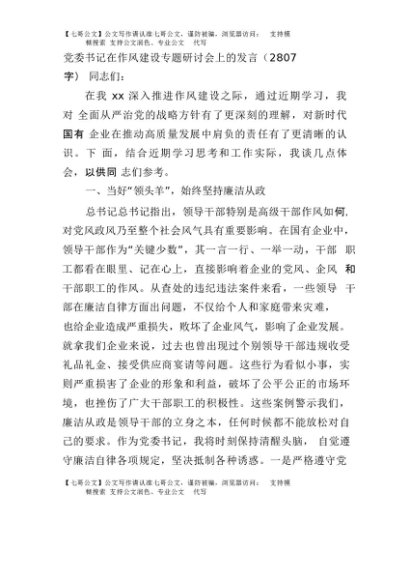【七哥公文】2025年:党委书记在作风建设专题研讨会上的发言(2807字)+更多免费公文+VX:QiGeGongWen2024