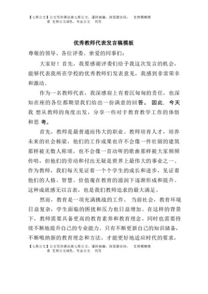 / 【七哥公文】2025年:优秀教师代表发言稿模板+更多免费公文+VX:QiGeGongWen2024