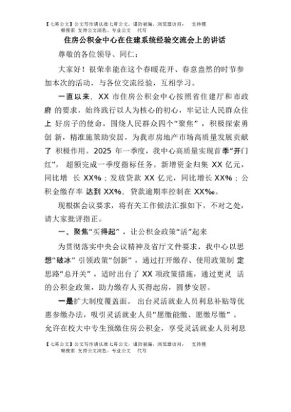 / 【七哥公文】2025年:住房公积金中心在住建系统经验交流会上的讲话+更多免费公文+VX:QiGeGongWen2024
