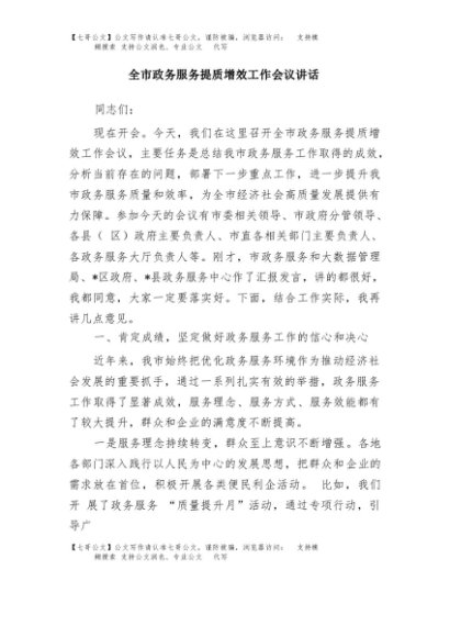 / 【七哥公文】2025年:全市政务服务提质增效工作会议讲话+更多免费公文+VX:QiGeGongWen2024