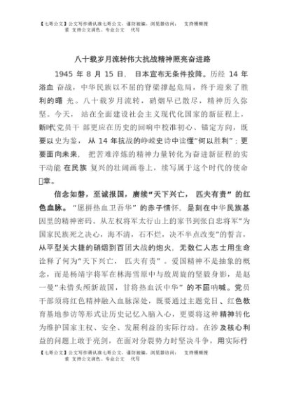 【七哥公文】2025年:八十载岁月流转 伟大抗战精神照亮奋进路+更多免费公文+VX:QiGeGongWen2024