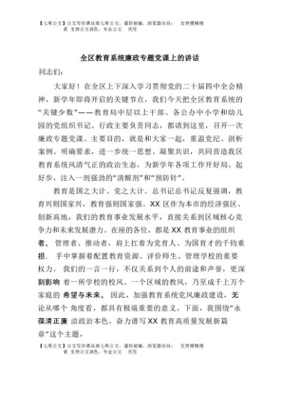 / 【七哥公文】2025年:全区教育系统廉政专题党课上的讲话+更多免费公文+VX:QiGeGongWen2024