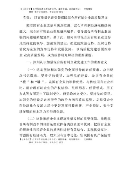 【七哥公文】2025年:党课:以高质量党建引领保障混合所有制企业高质量发展+更多免费公文+VX:QiGeGongWen2024