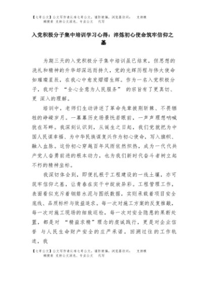 【七哥公文】2025年:入党积极分子集中培训学习心得:淬炼初心使命筑牢信仰之基+更多免费公文+VX:QiGeGongWen2024
