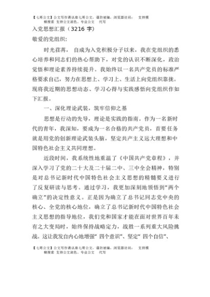 / 【七哥公文】2025年:入党思想汇报(3216字)+更多免费公文+VX:QiGeGongWen2024