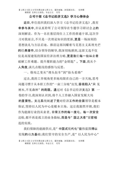 / 【七哥公文】2025年:公司干部《总书记经济文选》学习心得体会+更多免费公文+VX:QiGeGongWen2024