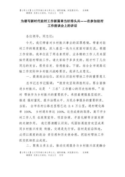 【七哥公文】2025年:为谱写新时代驻村工作新篇章当好排头兵——在参加驻村工作座谈会上的讲话+更多免费公文+VX:QiGeGongWen2024