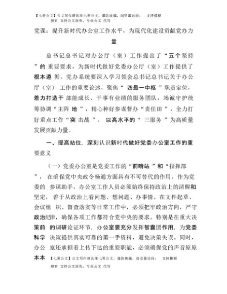 【七哥公文】2025年:党课:提升新时代办公室工作水平,为现代化建设贡献党办力量+更多免费公文+VX:QiGeGongWen2024