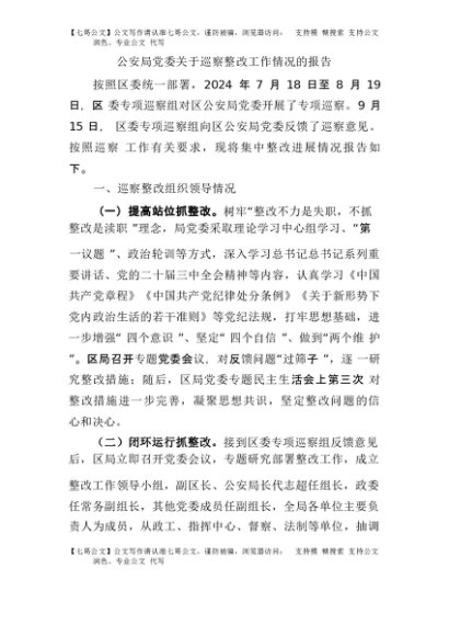 / 【七哥公文】2025年:公安局党委关于巡察整改工作情况的总结报告+更多免费公文+VX:QiGeGongWen2024