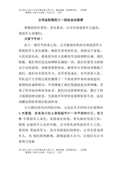 【七哥公文】2025年:公司总经理庆八一活动会议致辞+更多免费公文+VX:QiGeGongWen2024