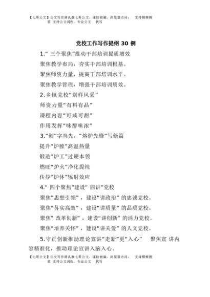/ 【七哥公文】2025年:党校工作写作提纲30例+更多免费公文+VX:QiGeGongWen2024