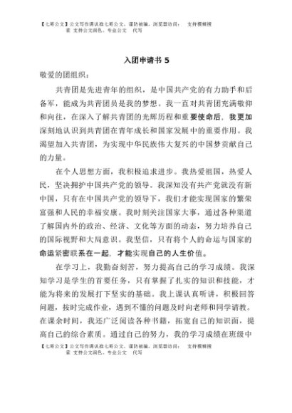 【七哥公文】2025年:入团申请书5+更多免费公文+VX:QiGeGongWen2024