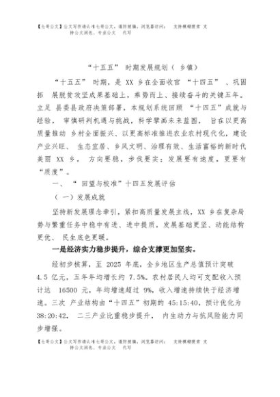 / 【七哥公文】2025年:乡镇“十五五”时期发展规划(初稿)+更多免费公文+VX:QiGeGongWen2024