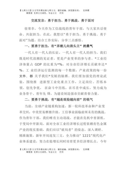 / 【七哥公文】2025年:交流发言:勇于担当、勇于挑战、勇于面对+更多免费公文+VX:QiGeGongWen2024