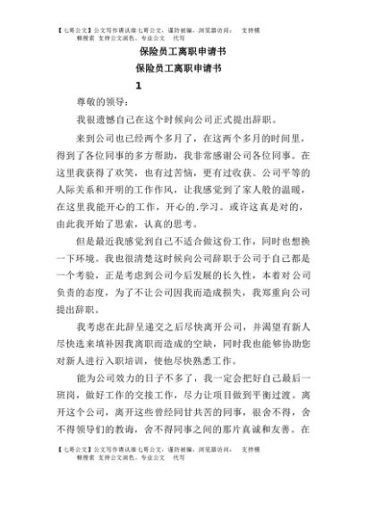 / 【七哥公文】2025年:保险员工离职申请书+更多免费公文+VX:QiGeGongWen2024
