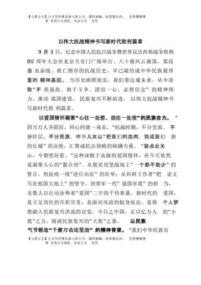 【七哥公文】2025年:以伟大抗战精神书写新时代胜利篇章+更多免费公文+VX:QiGeGongWen2024