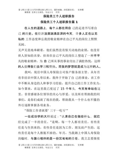 / 【七哥公文】2025年:保险员工个人述职报告+更多免费公文+VX:QiGeGongWen2024