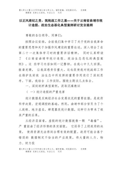 【七哥公文】2025年:以正风肃纪之责,筑统战工作之基——关于云南省曲靖市统计造假、政治生态恶化典型案例研讨发言提纲+更多免费公文+VX:QiGeGongWen2024