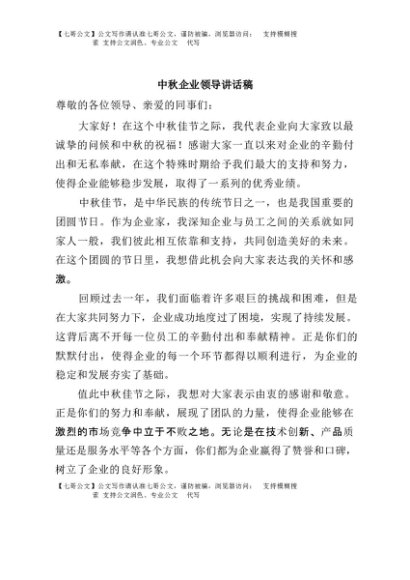 【七哥公文】2025年:中秋企业领导讲话稿+更多免费公文+VX:QiGeGongWen2024