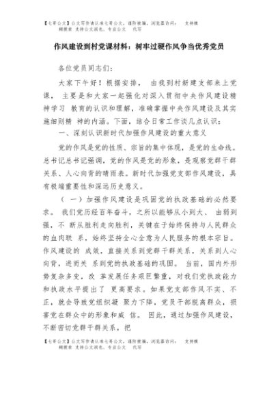 / 【七哥公文】2025年:作风建设到村党课材料:树牢过硬作风争当优秀党员+更多免费公文+VX:QiGeGongWen2024