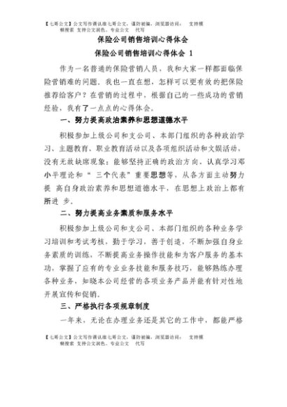 / 【七哥公文】2025年:保险公司销售培训心得体会+更多免费公文+VX:QiGeGongWen2024